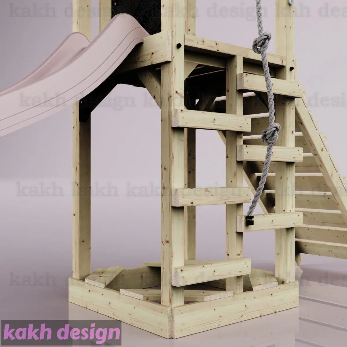 چوب طبیعی و رنگ های طبیعی از مزایای طراحی این محصولات می باشد استفاده هوشمندانه از درب روشن و دیوار نششان می دهد عنصر بازی مقدار زیادی از نور طبیعی و پلت فرم مطرح شده است مقدار زیادی برای کشف و لذت بردن از داشتن یک دیوار کوهنوردی عمودی, سرسره 8ft و فضای زیر به نوبه خود به یک گودال معمایی تبدیل شده اینجا فقط جایی برای بازی نیستند، بلکه پناهگاه کودکان، مکانی برای استراحت، لذت بردن و شاد بودن هستند.