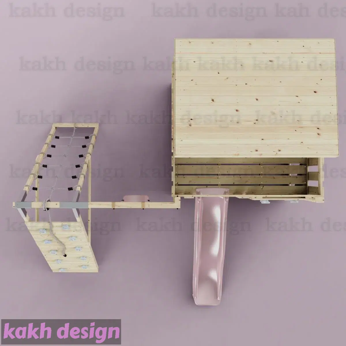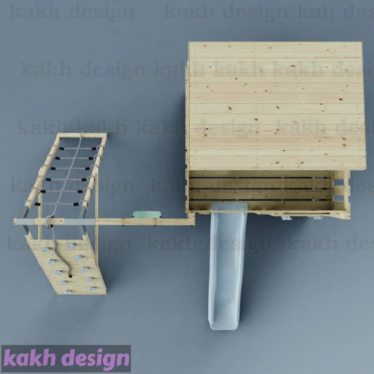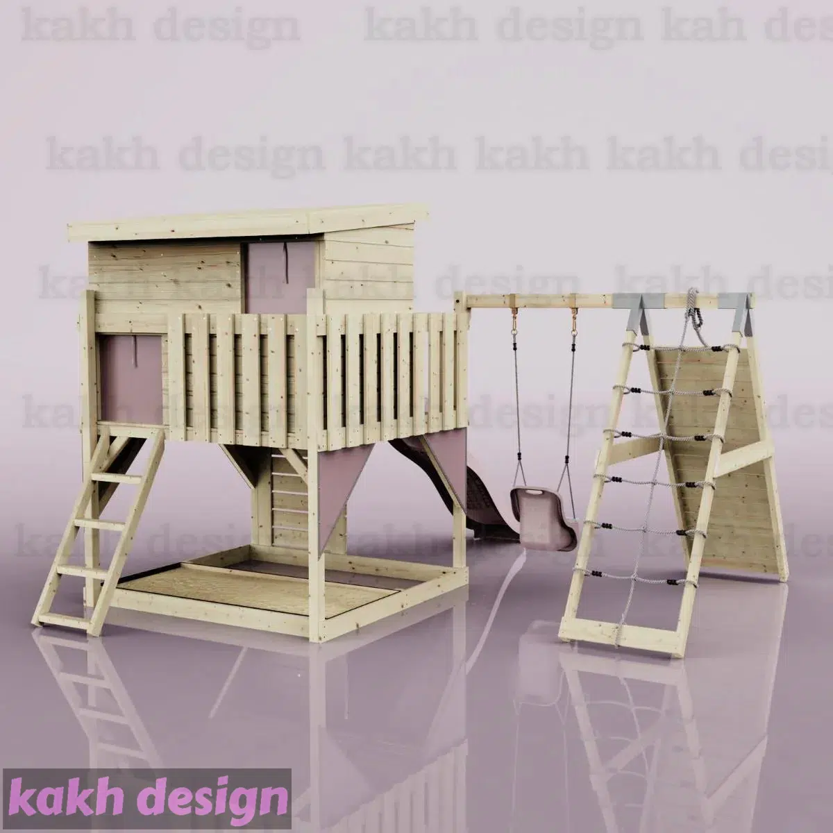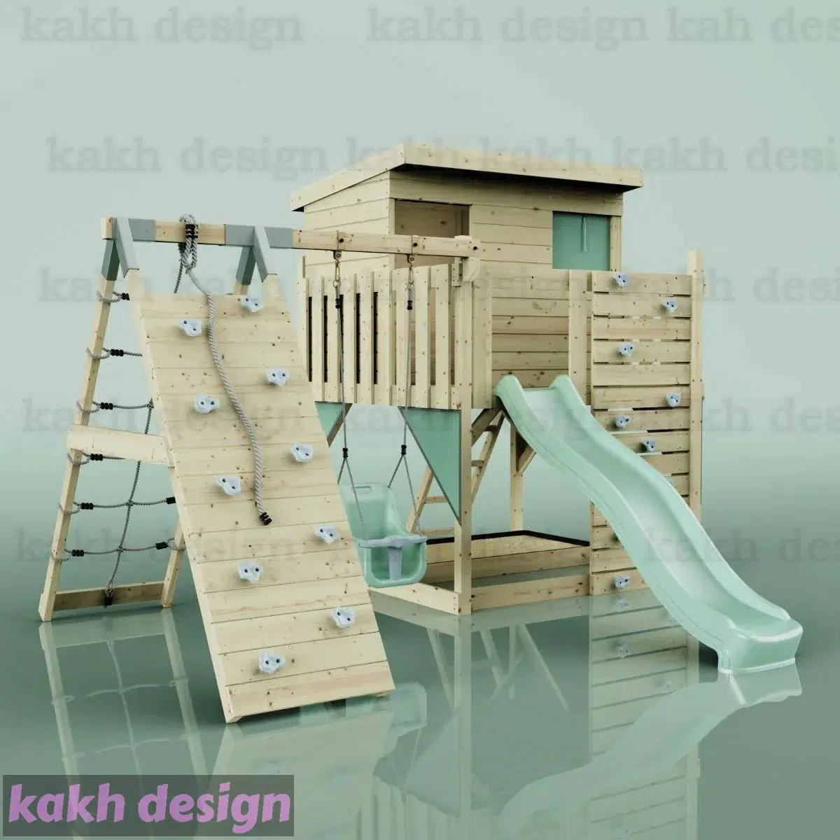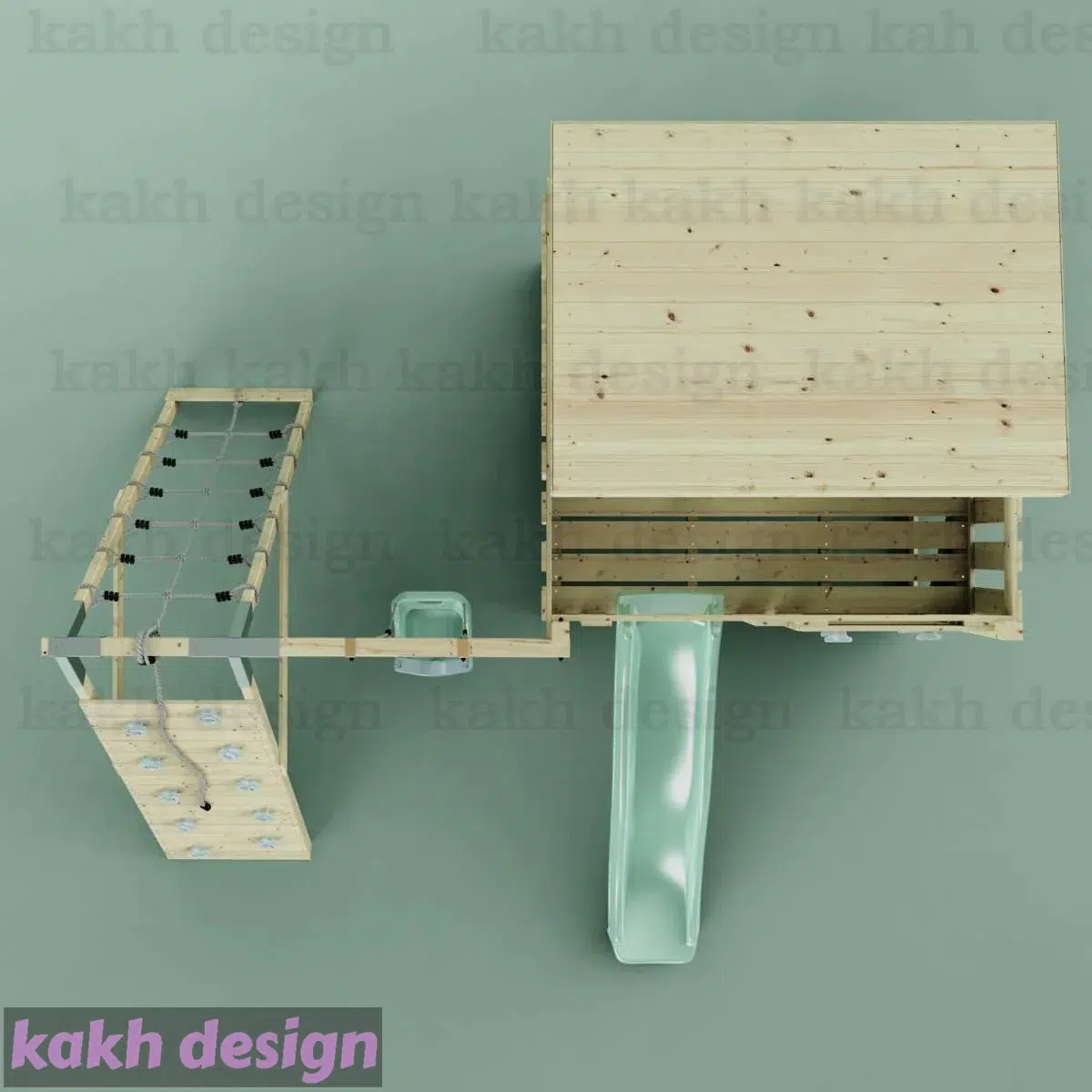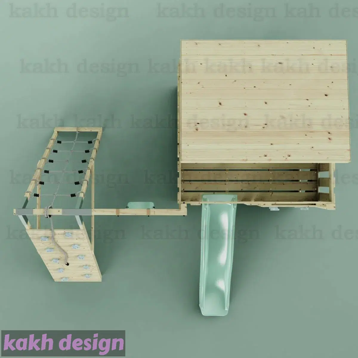 کلبه چوبی جنگلی به همراه دیوارهای صخره نوردی و نردبان طنابی کد 2