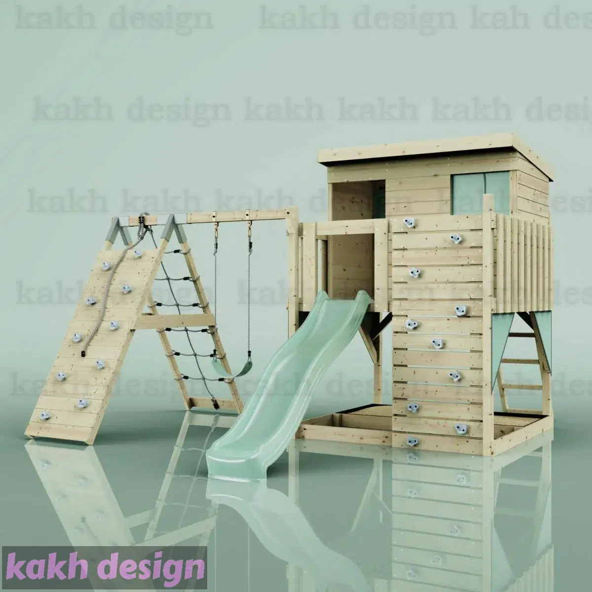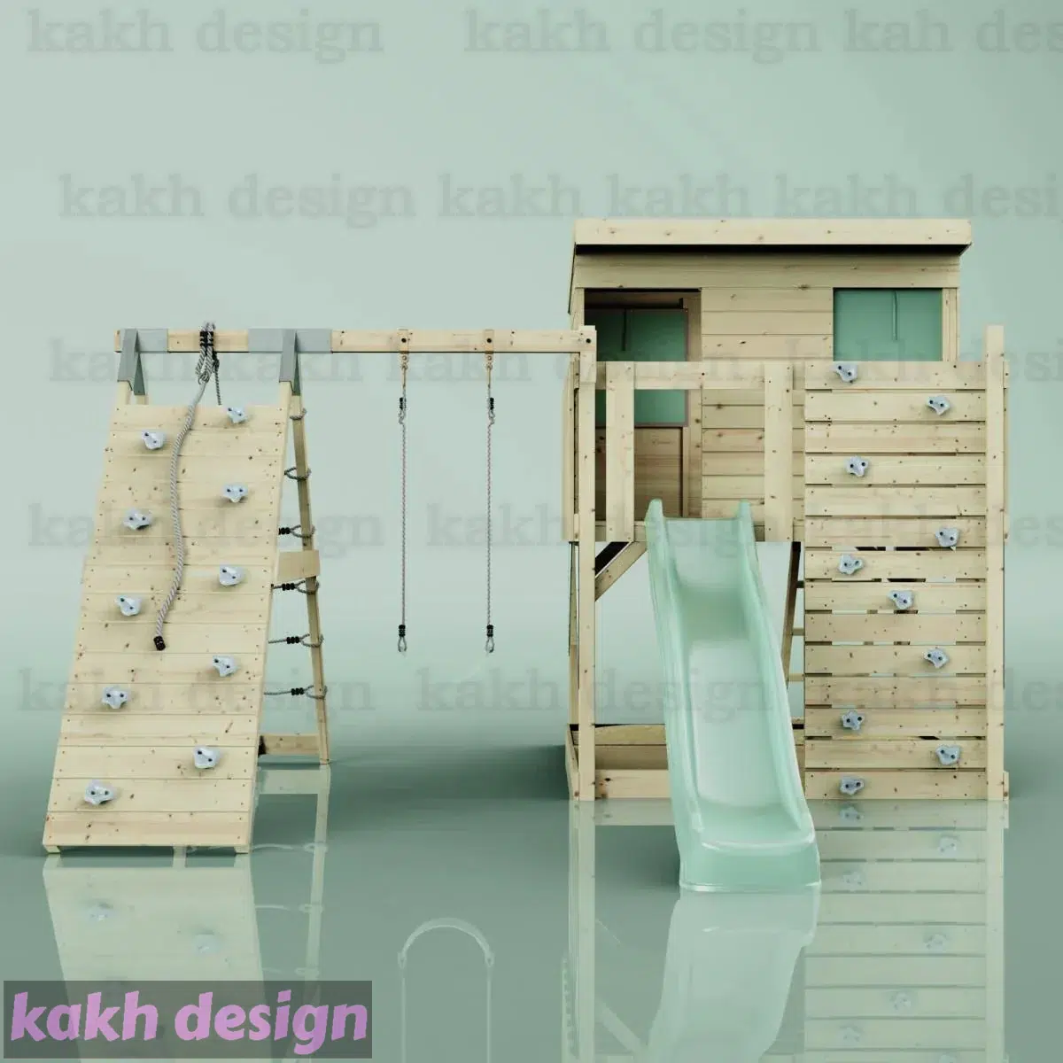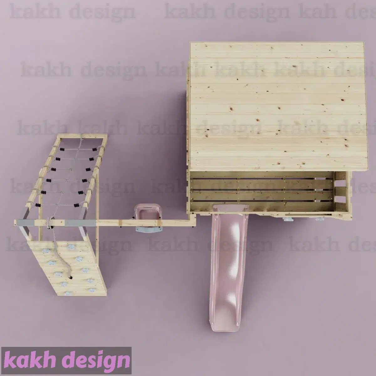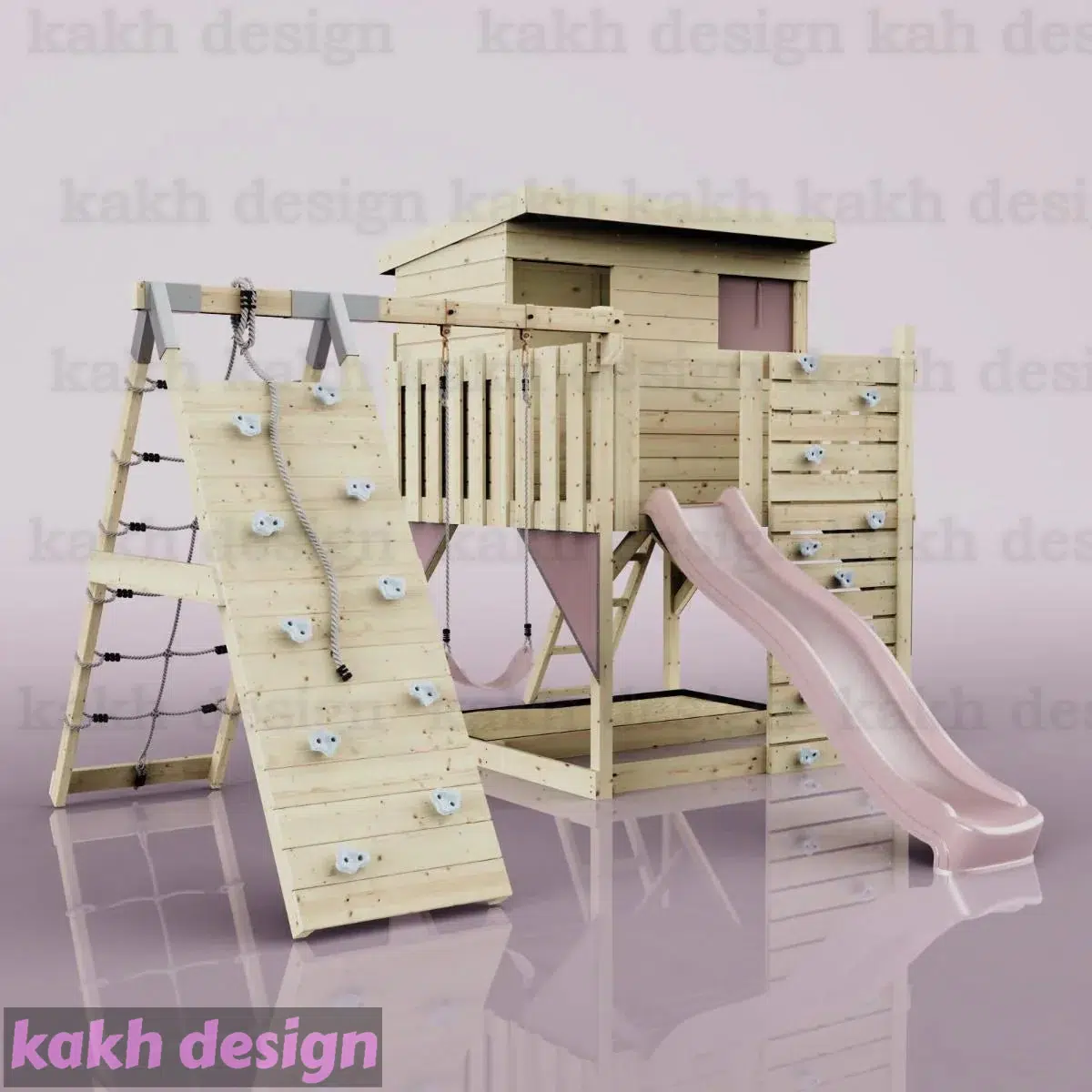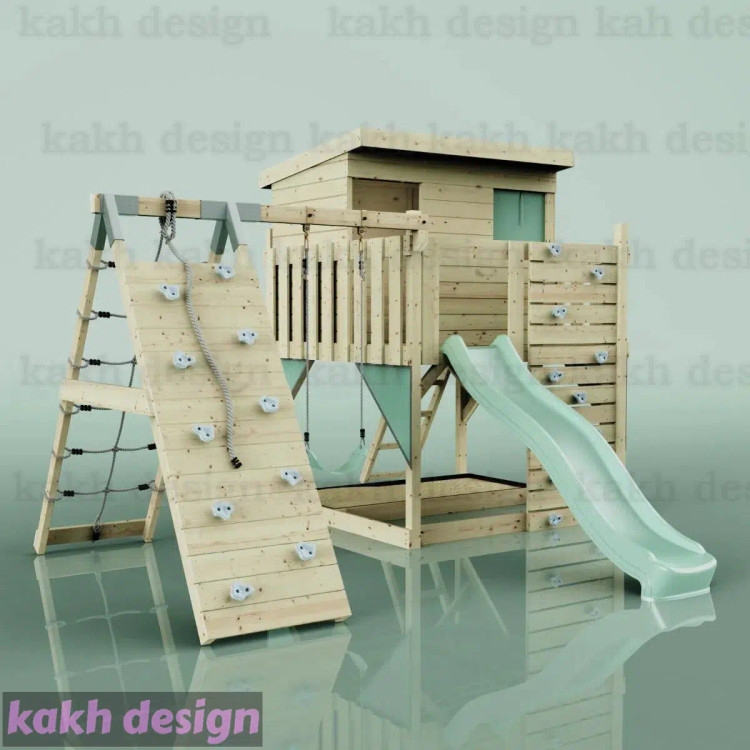 کلبه چوبی جنگلی به همراه دیوارهای صخره نوردی و نردبان طنابی کد 2