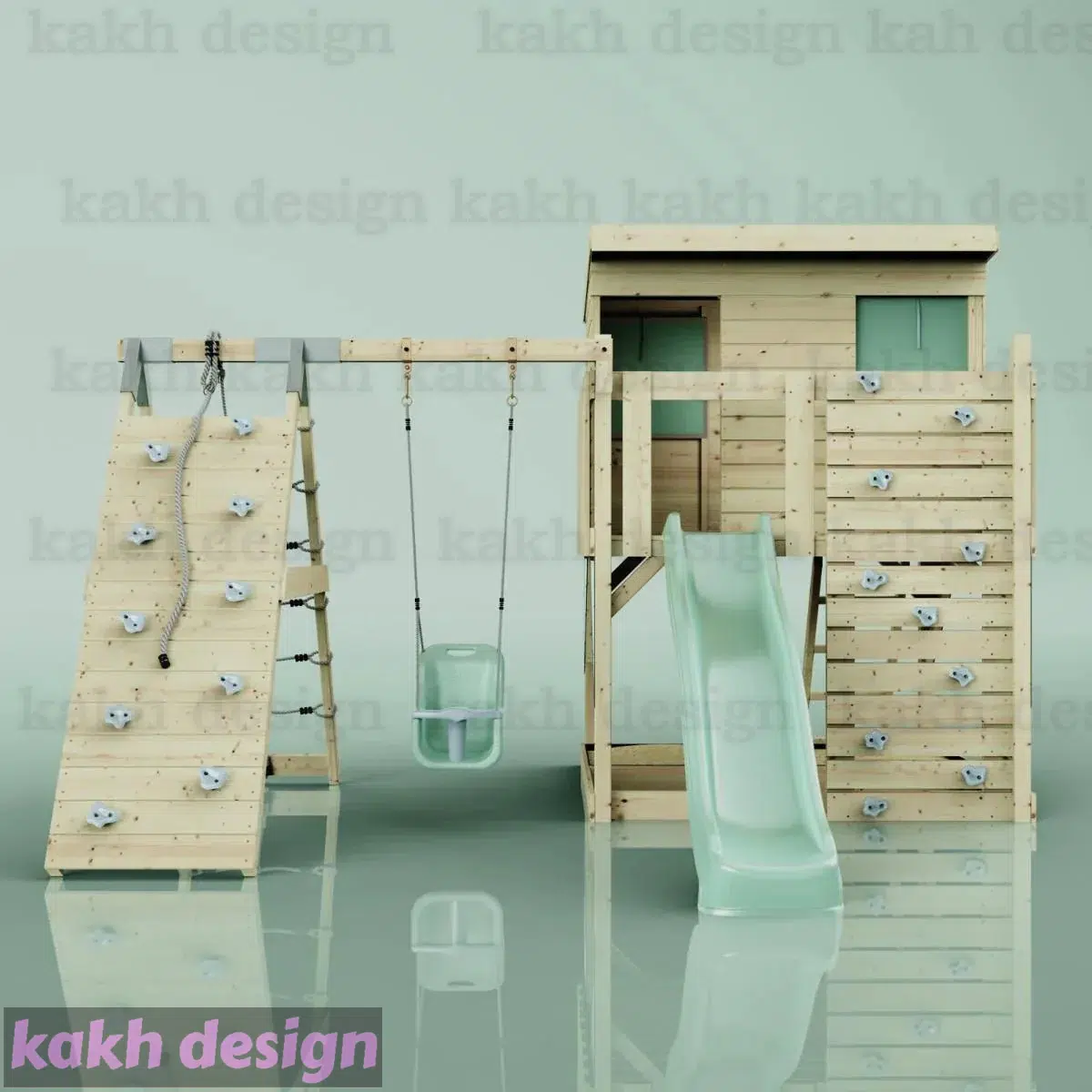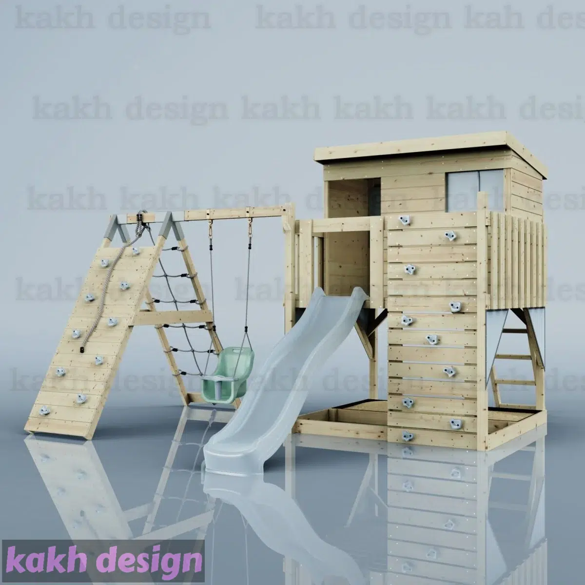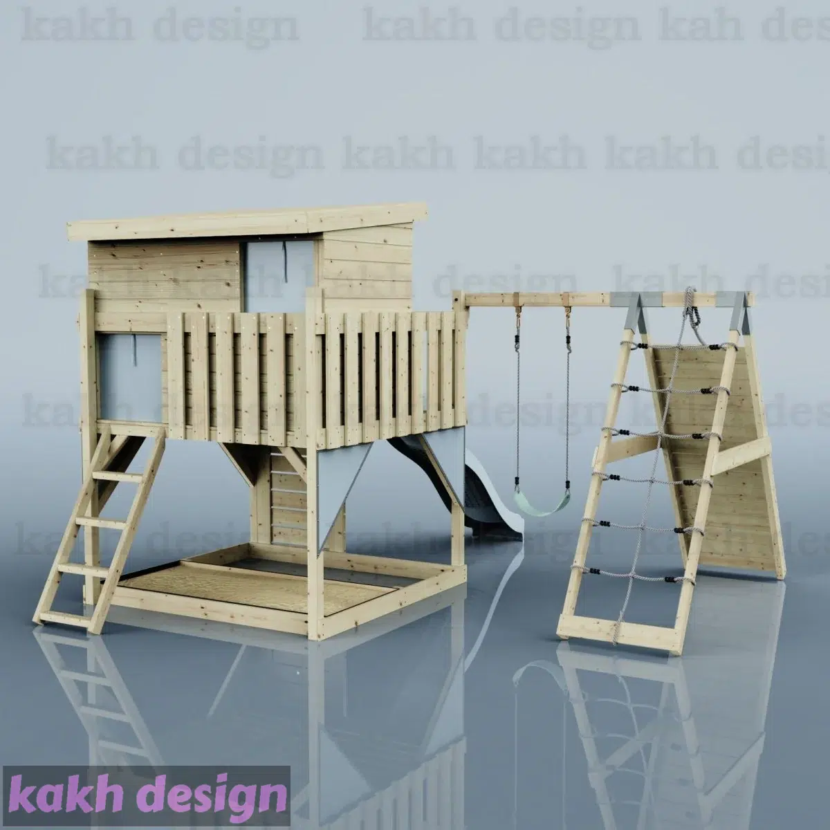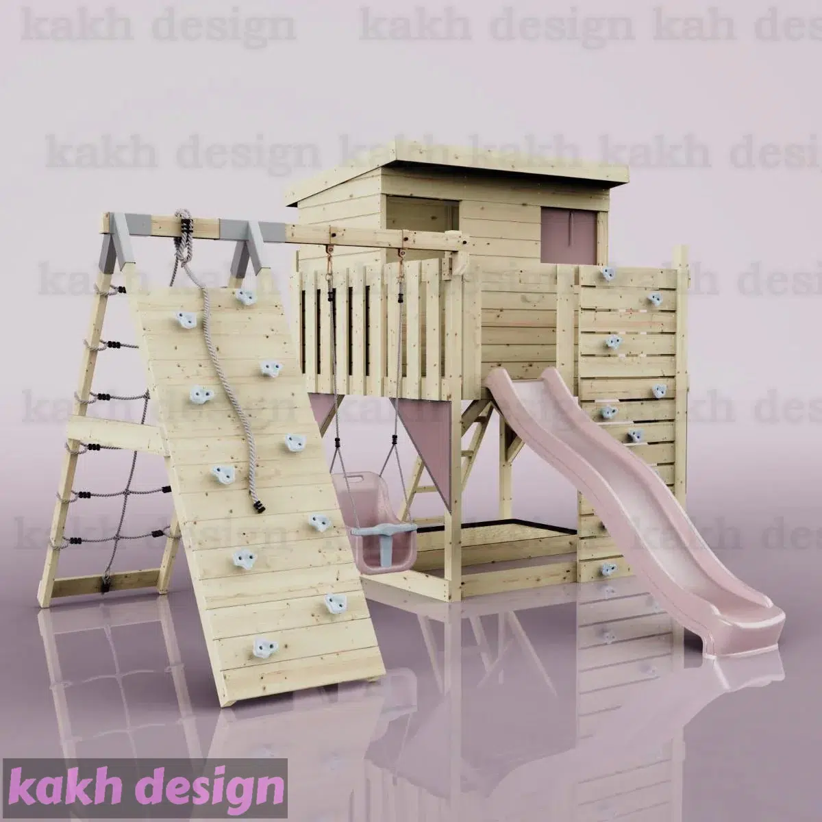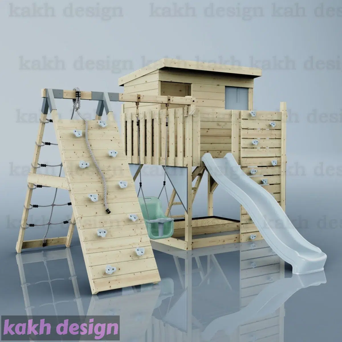 کلبه چوبی جنگلی به همراه دیوارهای صخره نوردی و نردبان طنابی کد 2