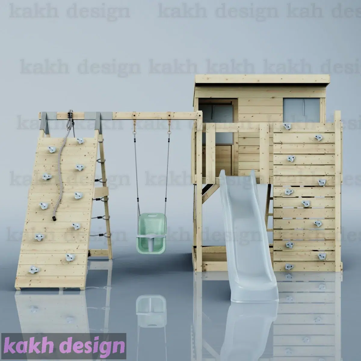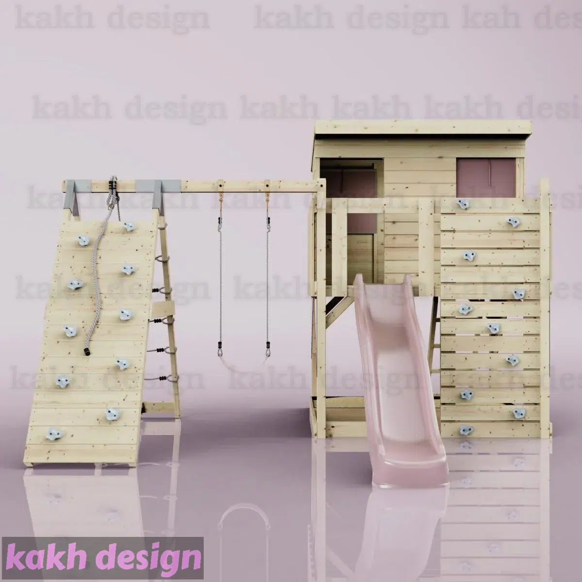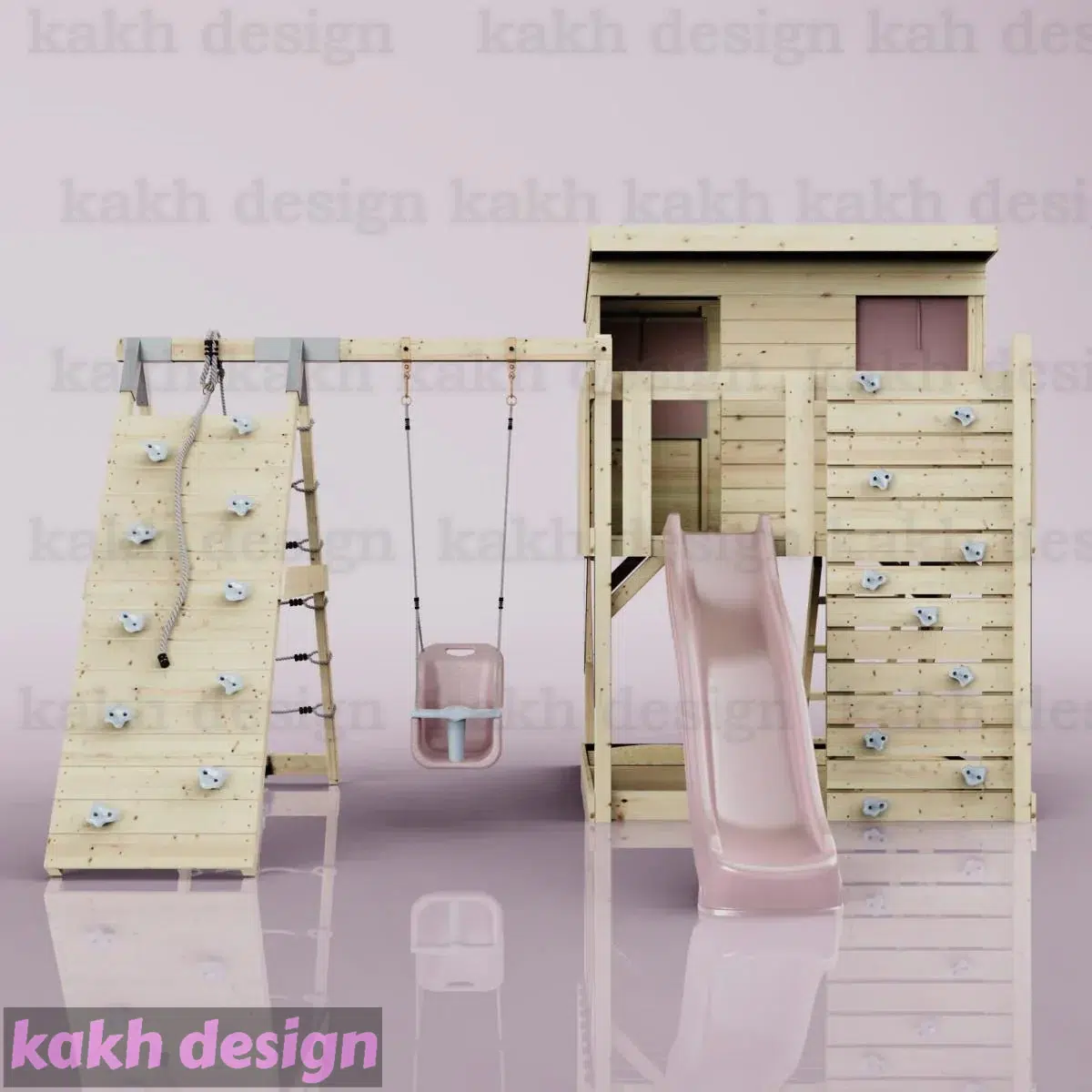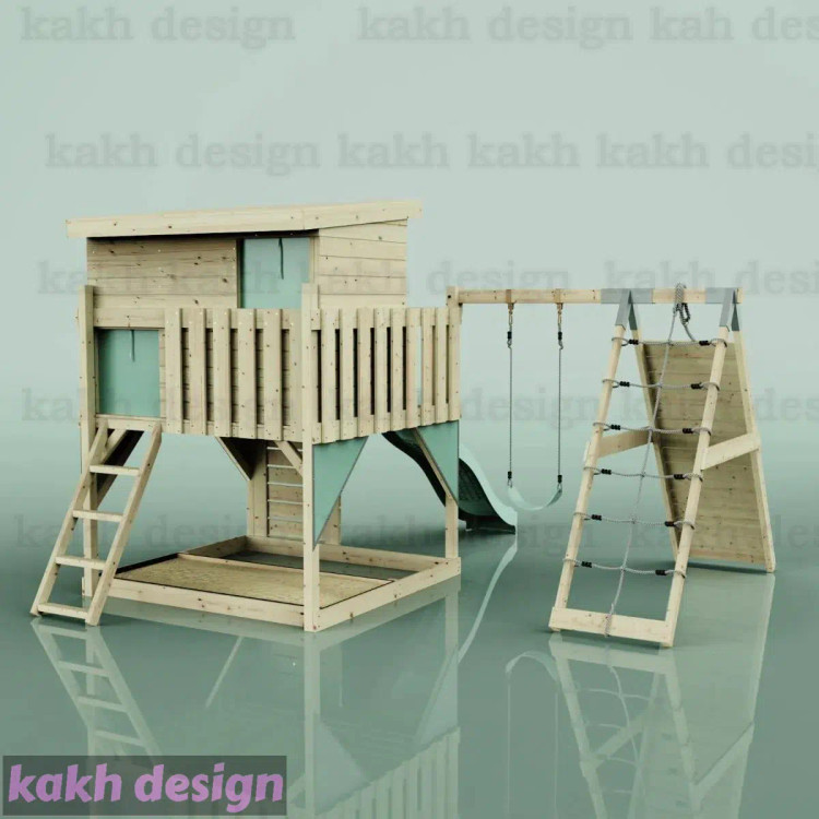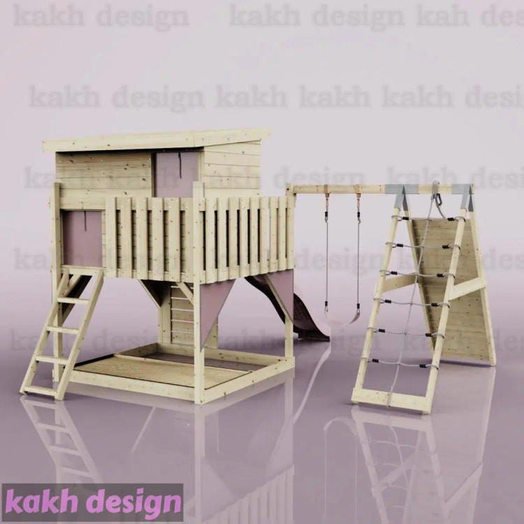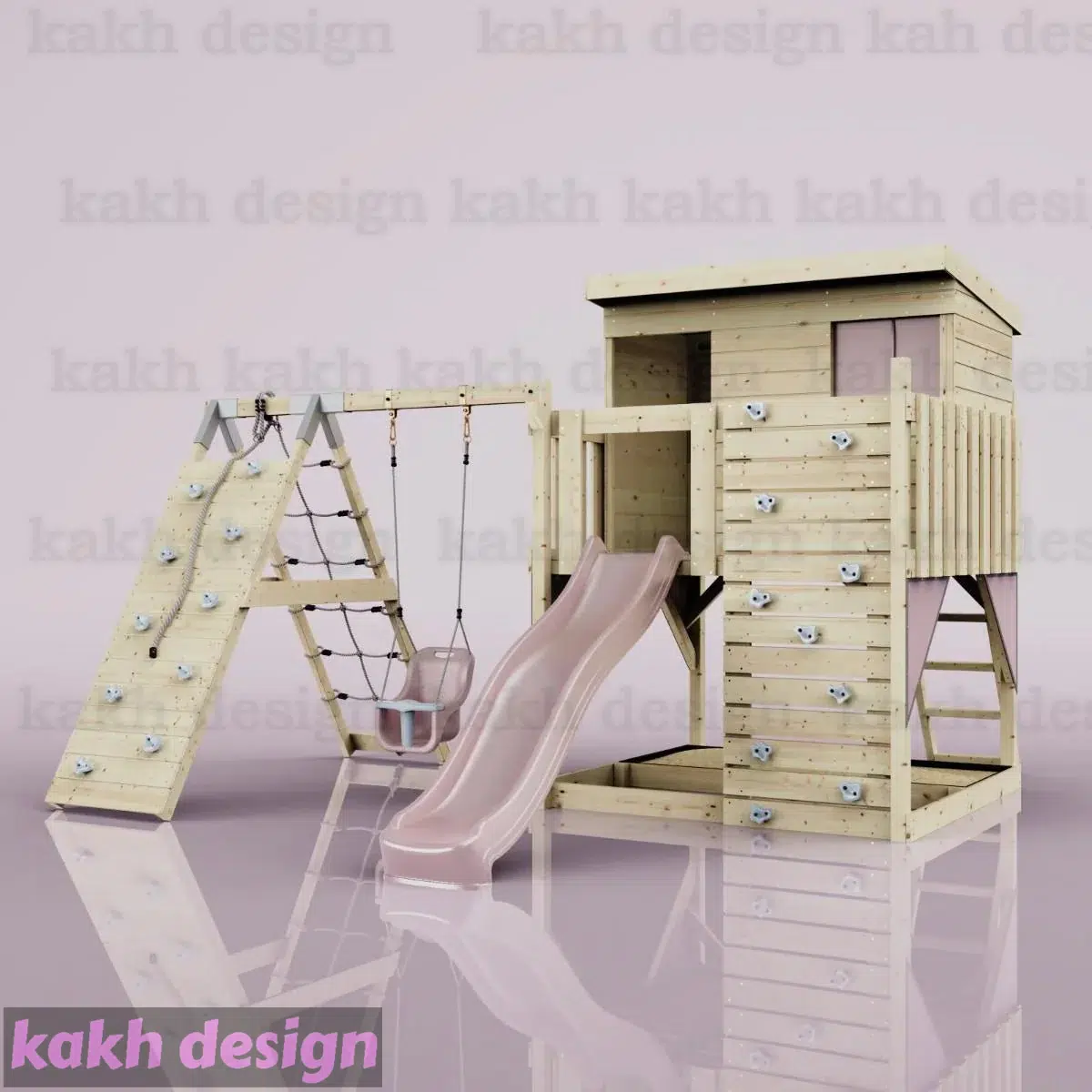 کلبه چوبی جنگلی به همراه دیوارهای صخره نوردی و نردبان طنابی کد 2