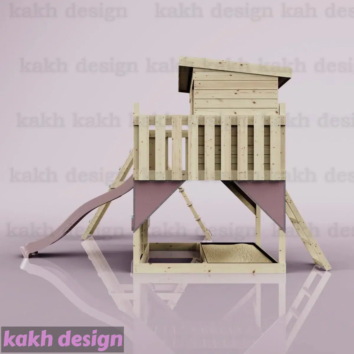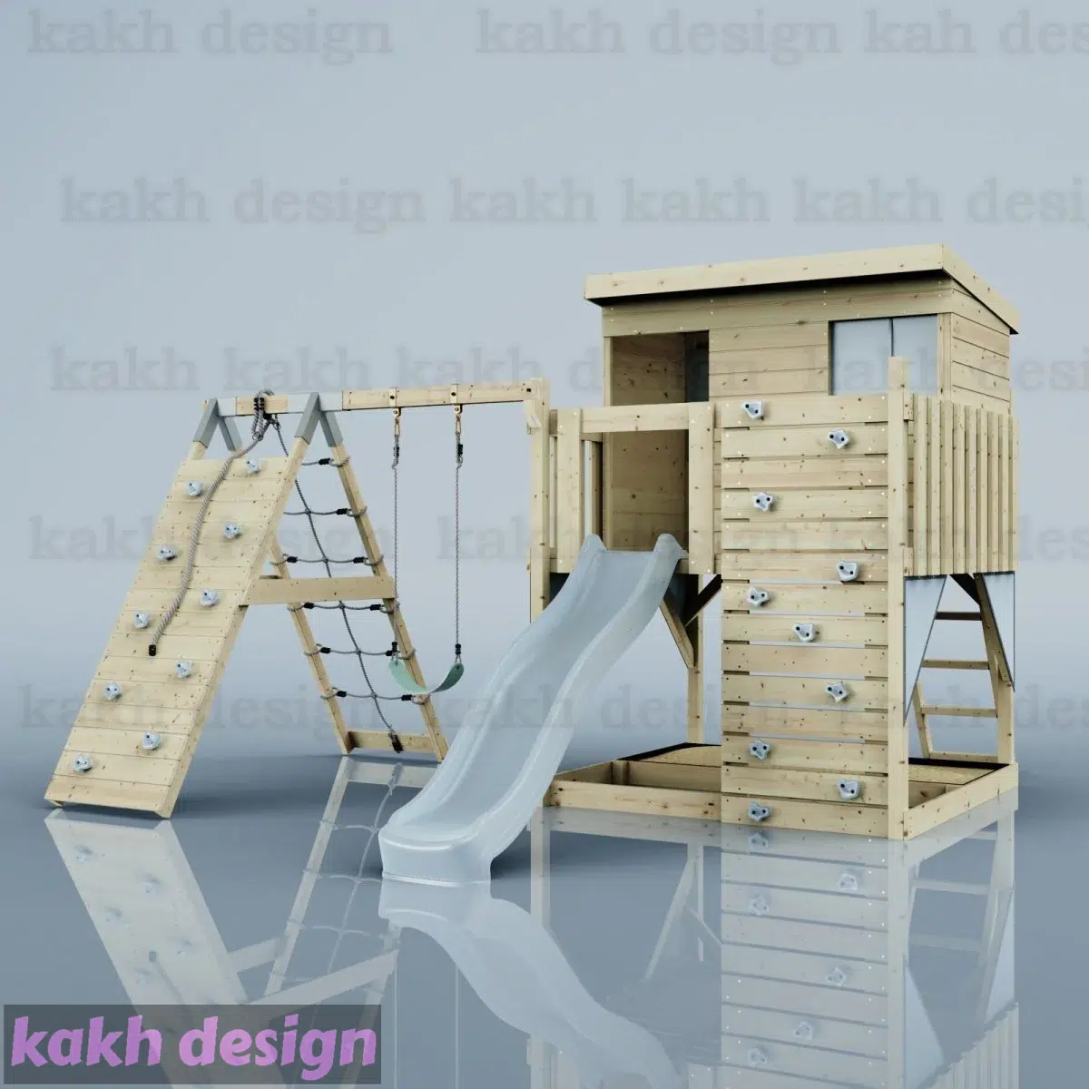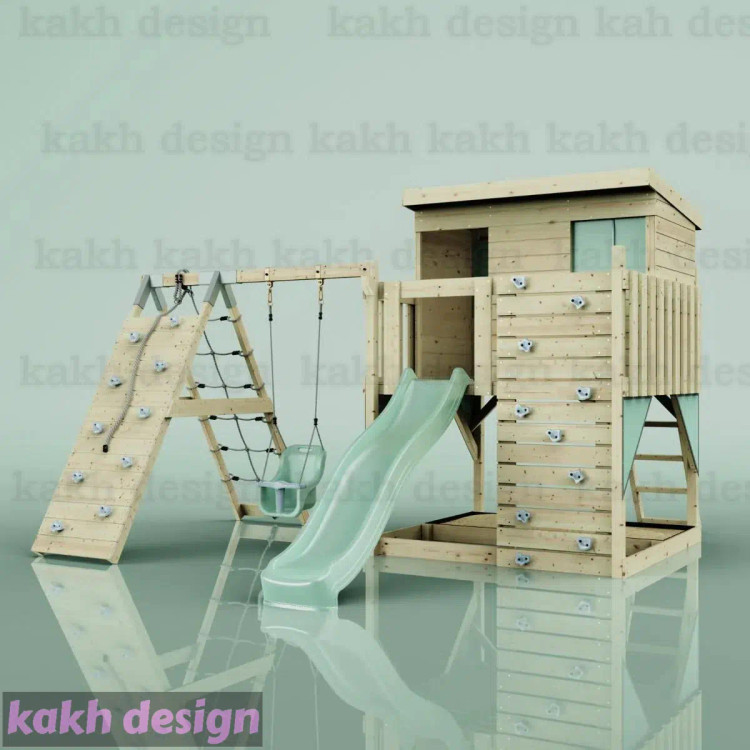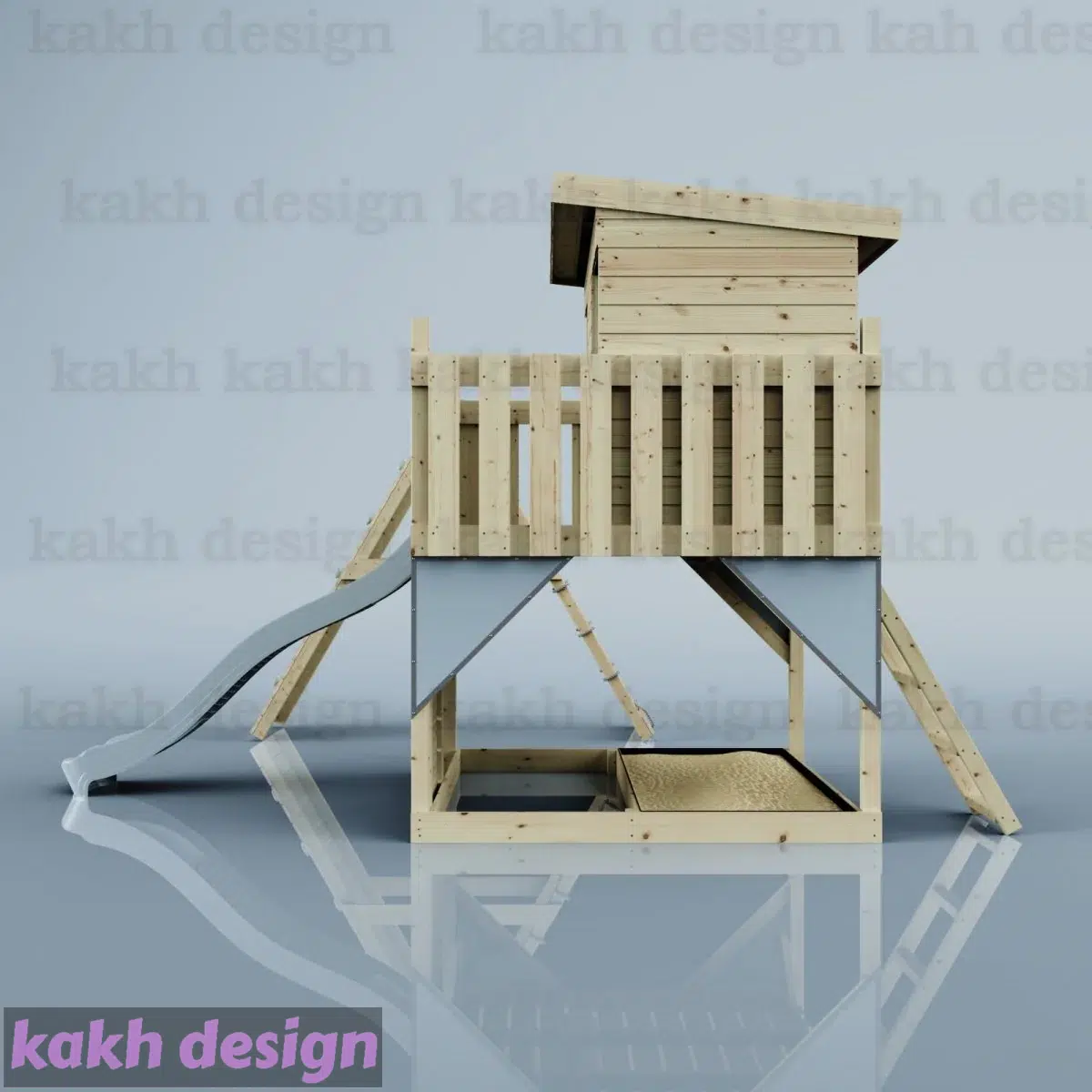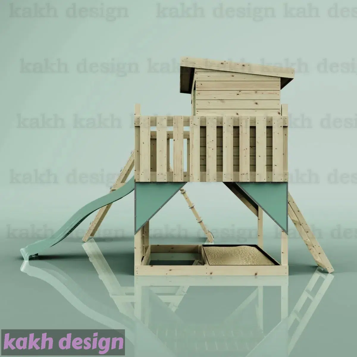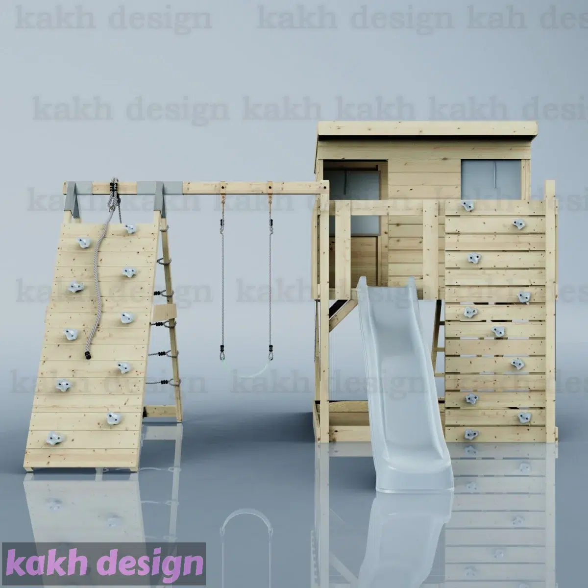 کلبه چوبی جنگلی به همراه دیوارهای صخره نوردی و نردبان طنابی کد 2