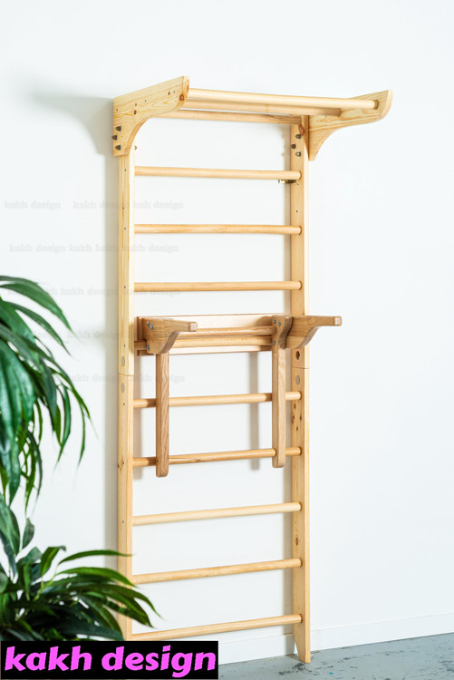نردبان سوئدی چوبی به همراه پارلل چند منظوره با میله های کششی کد2