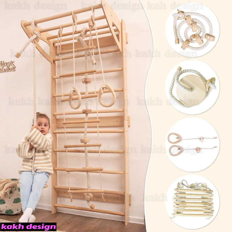 مجموعه ورزشی نردبان سوئدی به همراه حلقه ژیمناستیک ، بارفیکس،پارالل،نردبان میمونی،دیواره صخره نوردی،سرسره یک مجموعه چند منظوره هست . این مجموعه ورزشی یک سازه کوهنوردی داخلی به همراه گیره های صخره نوردی دارد که بازی را به یک سیستم جذاب تبدیل کرده است .