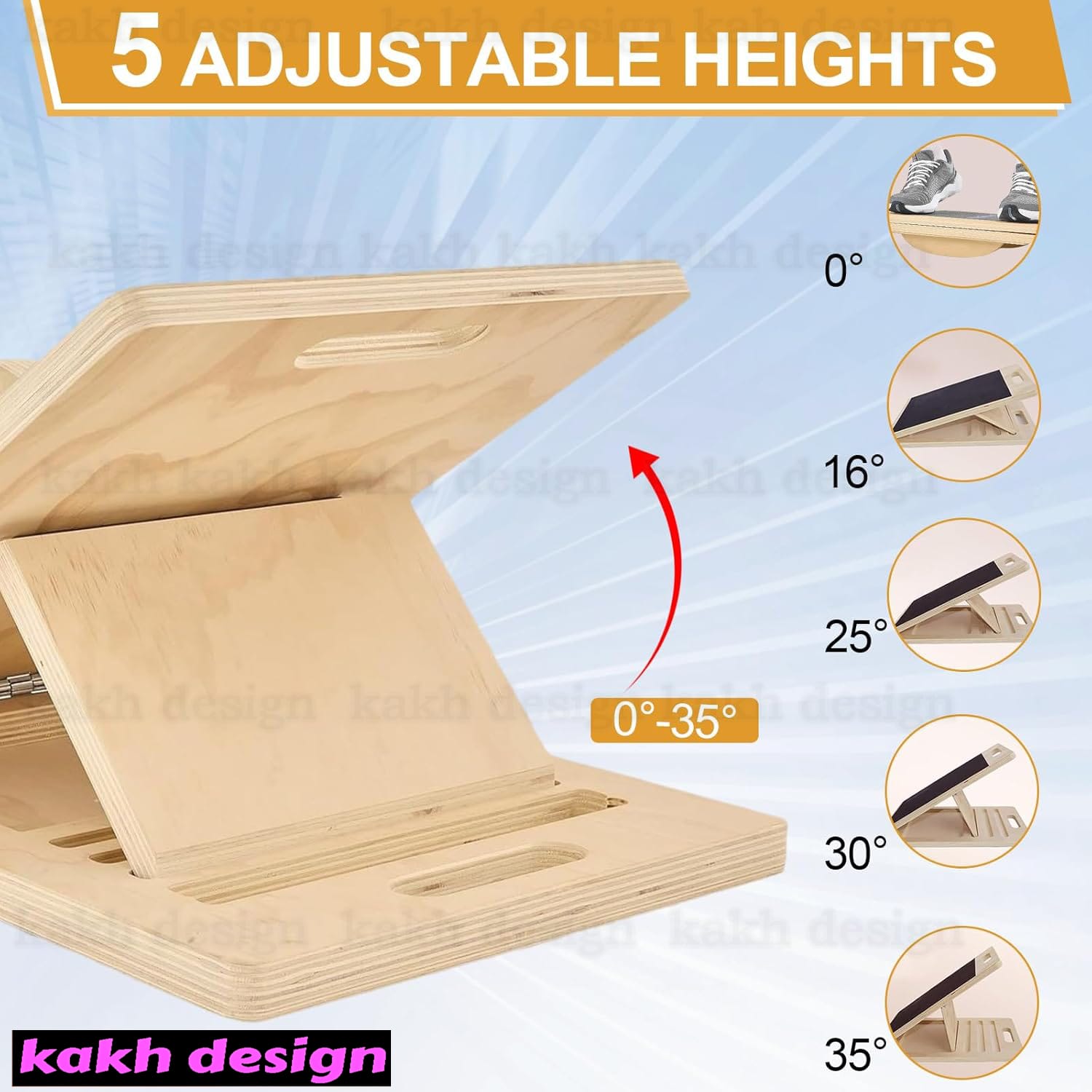 - با 5 زاویه قابل تنظیم (16 درجه، 25 درجه، 30 درجه، 35 درجه، 37 درجه)، تخته با سطح تناسب اندام و اهداف تمرینی شما سازگار است. چه با تمرینات کششی ملایم شروع کنید و چه بخواهید تمرین شدیدتری برای قدرت و تعادل داشته باشید، تنظیم زاویه انعطاف پذیر به شما امکان می دهد شدت را به صورت جداگانه افزایش دهید و در نتیجه به طور موثر قدرت و تعادل را بهبود ببخشید.