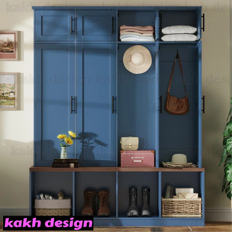 ۱. طراحی چندمنظوره: به دنبال طراحیهایی باشید که هم جاکفشی و هم جالباسی را در یک قطعه ادغام میکنند. مثلاً، یک کمد جاکفشی با درهای کشویی که فضای داخلی آن برای آویزان کردن لباسها و فضای خارجی آن برای قرار دادن کفشها طراحی شده باشد.