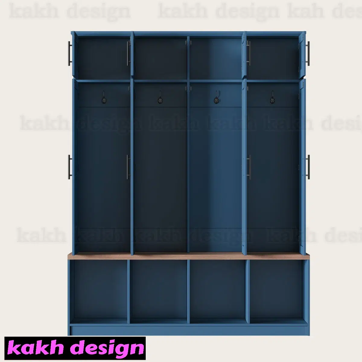 ۱. طراحی چندمنظوره: به دنبال طراحیهایی باشید که هم جاکفشی و هم جالباسی را در یک قطعه ادغام میکنند. مثلاً، یک کمد جاکفشی با درهای کشویی که فضای داخلی آن برای آویزان کردن لباسها و فضای خارجی آن برای قرار دادن کفشها طراحی شده باشد.
