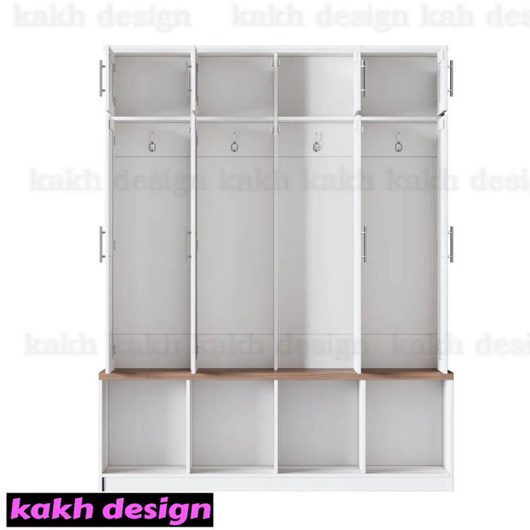 ۱. طراحی چندمنظوره: به دنبال طراحیهایی باشید که هم جاکفشی و هم جالباسی را در یک قطعه ادغام میکنند. مثلاً، یک کمد جاکفشی با درهای کشویی که فضای داخلی آن برای آویزان کردن لباسها و فضای خارجی آن برای قرار دادن کفشها طراحی شده باشد.