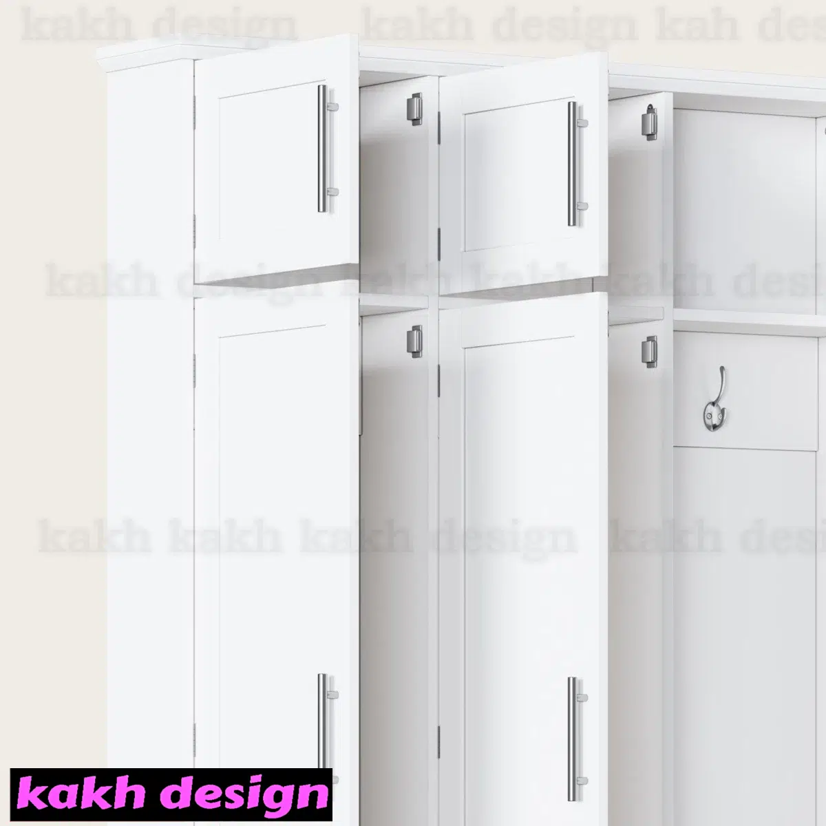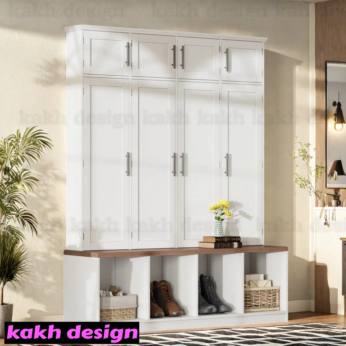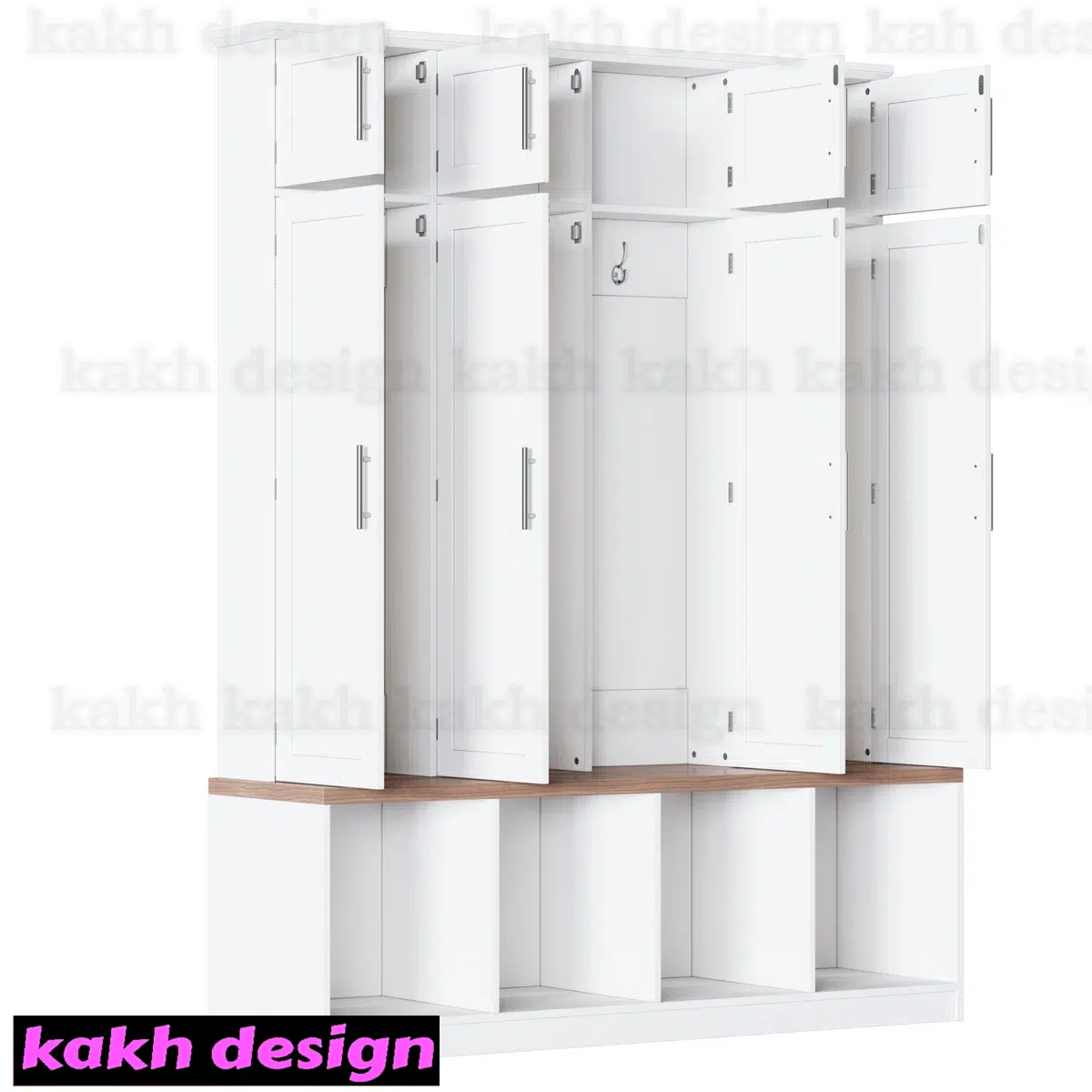 ۱. طراحی چندمنظوره: به دنبال طراحیهایی باشید که هم جاکفشی و هم جالباسی را در یک قطعه ادغام میکنند. مثلاً، یک کمد جاکفشی با درهای کشویی که فضای داخلی آن برای آویزان کردن لباسها و فضای خارجی آن برای قرار دادن کفشها طراحی شده باشد.