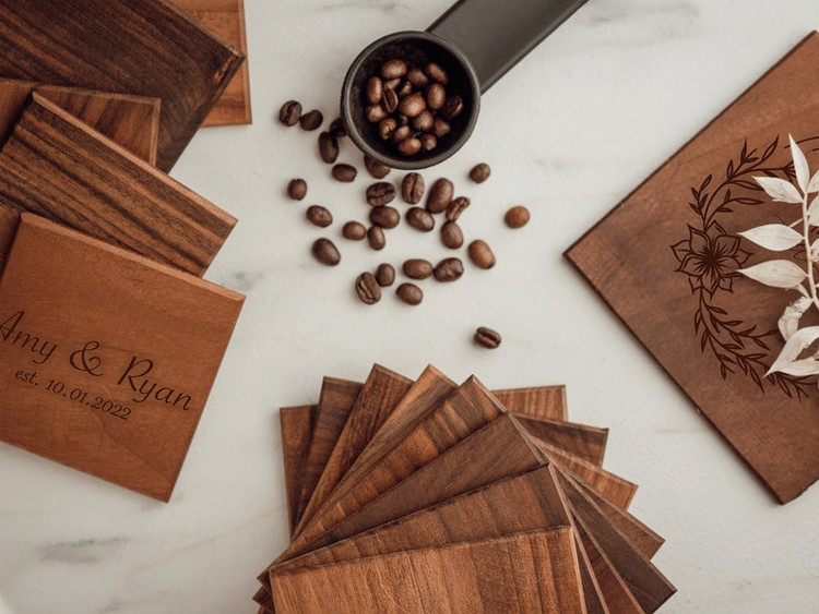 زیر لیوانی چوبی مربع حکاکی مخصوص کافی شاپ